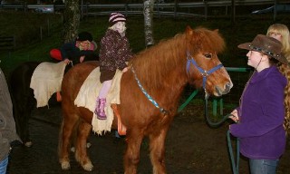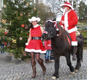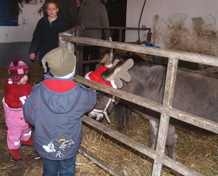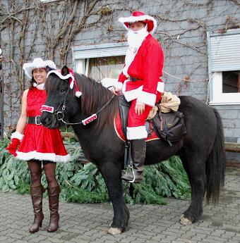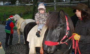 Gespannt warteten dann alle auf den Nikolaus, der am Nachmittag auf seinem festlich geschmückten Pferd vor den Saloon geritten kam.