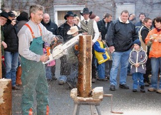 Auch die Erwachsenen konnten noch ein kleines Weihnachtsgeschenk mit nach Hause nehmen. Der Chainsaw-Artist Michael Kolb sägte Weihnachtssterne aus Baumstämmen, die sofort reißenden Absatz fanden.