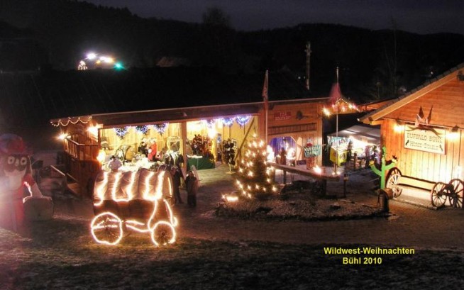 Und wieder weihnachtete es in Buffalo Bühl. Die Tonkifreunde hatten im Wesentlichen das erfolgreiche Grundkonzept aus dem Vorjahr neu aufgelegt. Durch den während des Sommers erfolgten Bau einer Vereinsscheune im Wild-West-Stil war jedoch ein weiterer überdachter Bereich hinzugekommen, so dass noch deutlich mehr Anbieter und Händler ihre Stände bei der Wild-West-Weihnacht aufschlagen konnten. So gab es in diesem Jahr erstmals auch Angebote, die auf anderen Märkten nur selten zu finden sind, wie zum Beispiel mundgeblasenen Christbaumschmuck in Form von Cowboystiefeln, Pferden, Planwagen und ähnlichem.