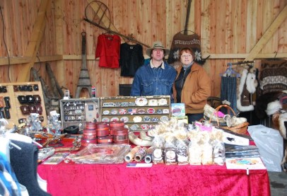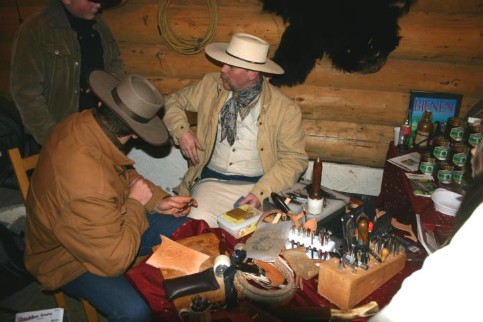Wie im Vorjahr war auch wieder unser Old-West-Sattler vertreten, der mit seinem Mitarbeiter im kanadischen Blockhaus seine Werkstatt aufgebaut hatte, und historische Techniken der Lederbearbeitung demonstrierte.