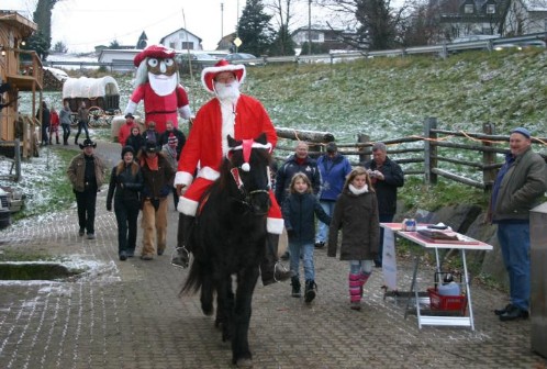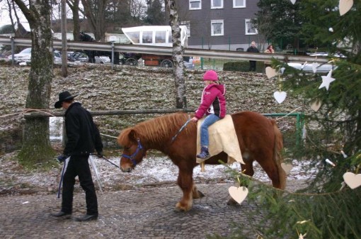 Der große Weihnachtsbaum wurde in diesem Jahr von Kindern aus dem Kindergarten Oberholzklau geschmückt, auf die im Anschluss zahlreiche Attraktionen warteten, wie Pony-Reiten oder das Brennen eines eigenen Brandzeichens. Letztetres durften die kleinen Besucher dann auch gleich auf einem Holzbrettchen mit nach Hause nehmen.