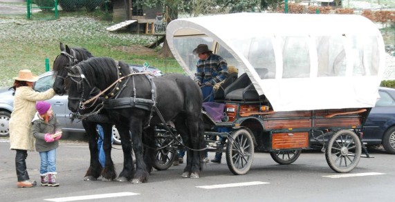 Erstmals konnten die Besucher auch wie die Siedler im amerikanischen Westen in einem echten Planwagen durch die Bühler Prärie fahren. Das Gespann mit den herrlichen Friesen fand dabei zahlreiche Bewunderer.