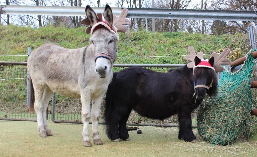 Auch unser "Streichelzoo" hat wieder geöffnet, und die kleinen Besucher können, wie an der Krippe in Bethlehem, Kontakt mit "Ochs und Esel" aufnehmen.